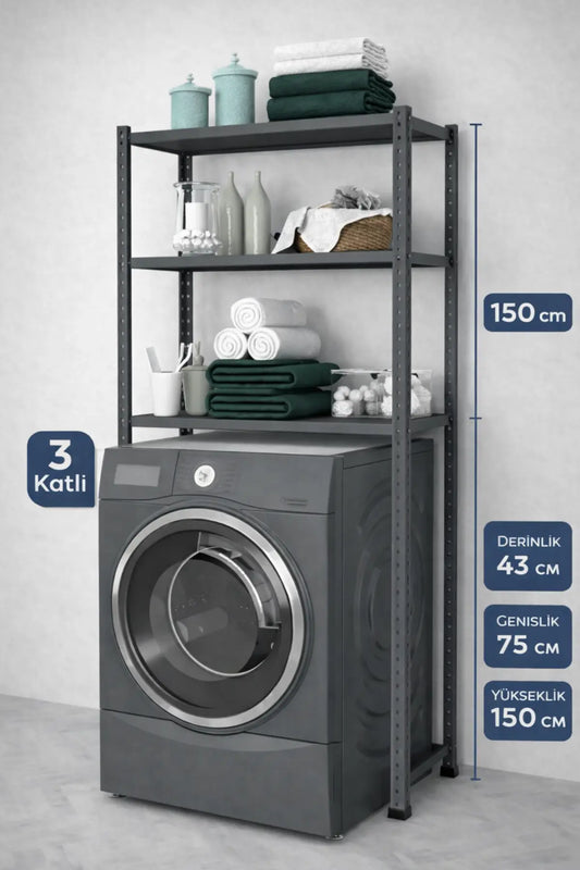 3 Raflı Metal Banyo Düzenleyici Metal Banyo Rafı Çamaşır Makinası Üstü 43X75X150