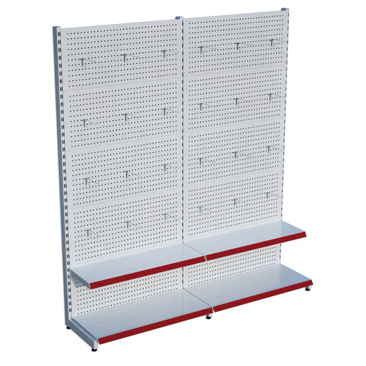Beyaz Renk 2 Katlı Kancalı Hırdavat Raf Sistemi | Market Rafı | PetShop Rafı | Kırtasiye Rafı Yükseklik H220 CM Yan Yana 2'li Birleşik