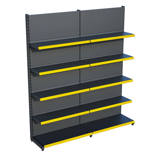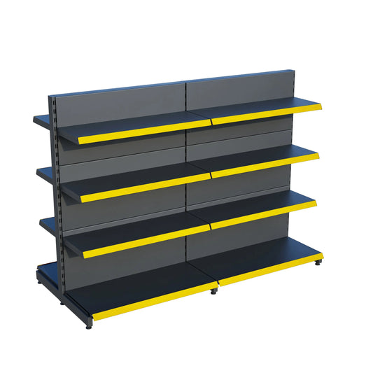 Antrasit Metal Çift Yönlü Orta Reyon 4 Katlı 2'li Birleşik Market Raf Sistemi | Market Rafı | G180CM Yükseklik H140 CM|