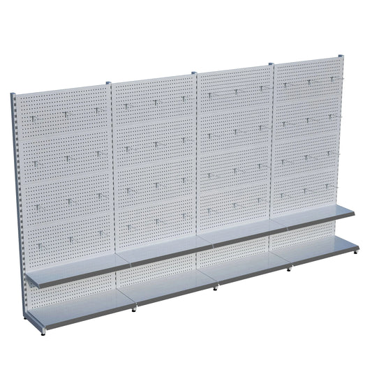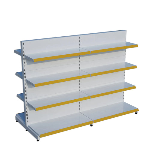 Beyaz Metal Çift Yönlü Orta Reyon 4 Katlı 2'li Birleşik Market Raf Sistemi | Market Rafı | G180CM Yükseklik H140 CM|