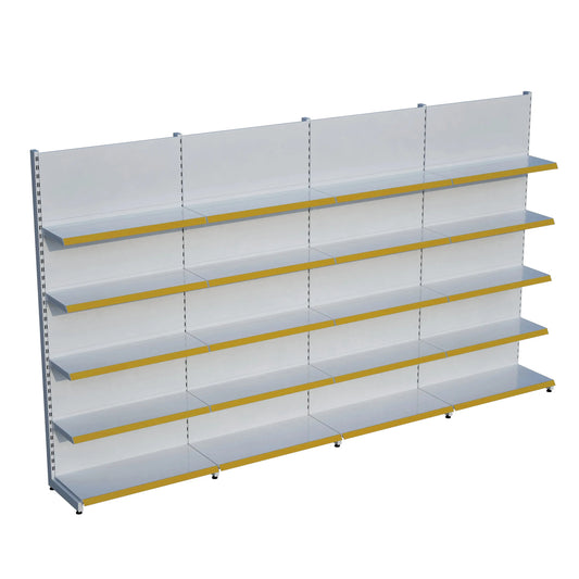 Beyaz Metal Çift Yönlü Orta Reyon 4 Katlı 5'li Birleşik Market Raf Sistemi | Market Rafı | G450CM Yükseklik H140 CM|
