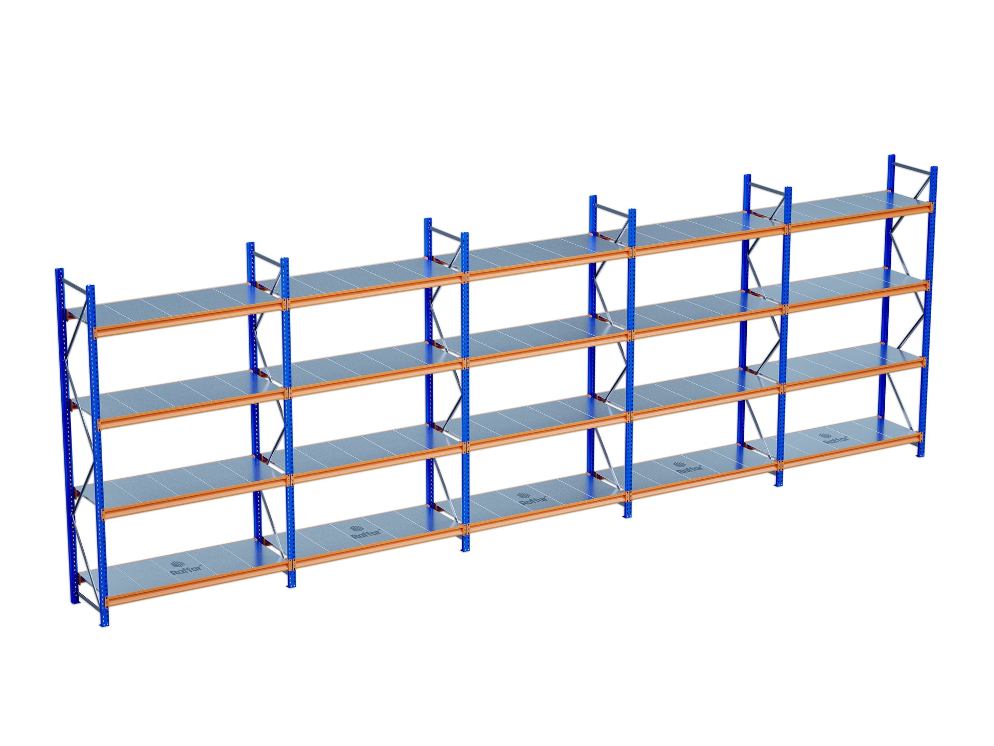 4 Katlı 5li Bitişik Endüstriyel Depo Raf Sistemi – Hafif Yük Rafı