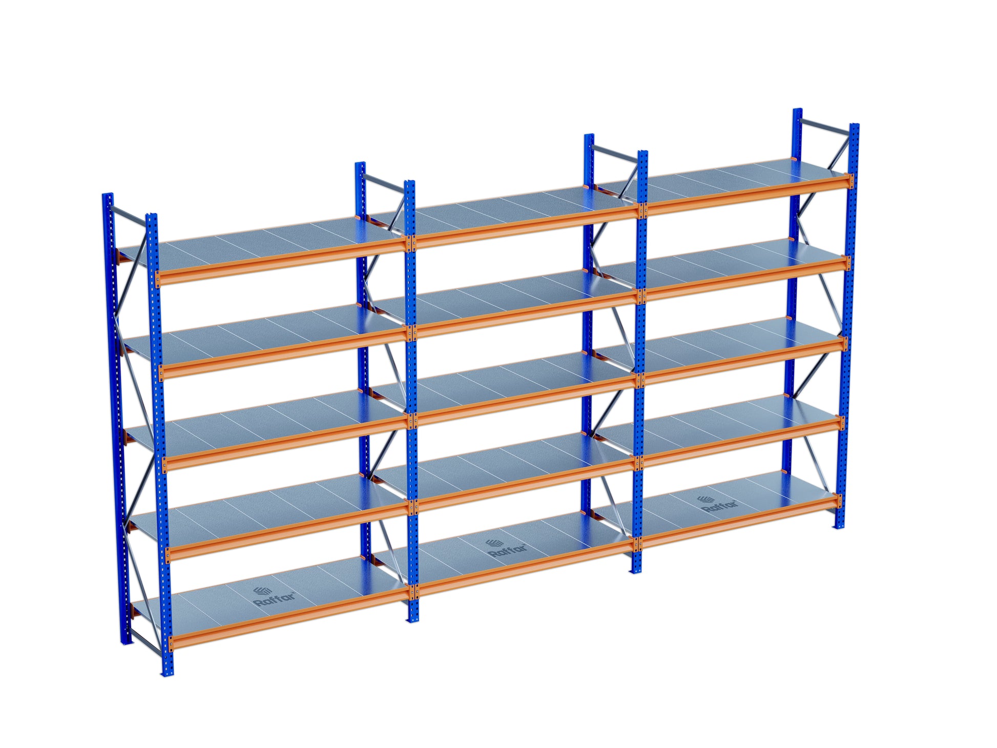 5 Katlı 3li Bitişik Endüstriyel Depo Raf Sistemi – Hafif Yük Rafı
