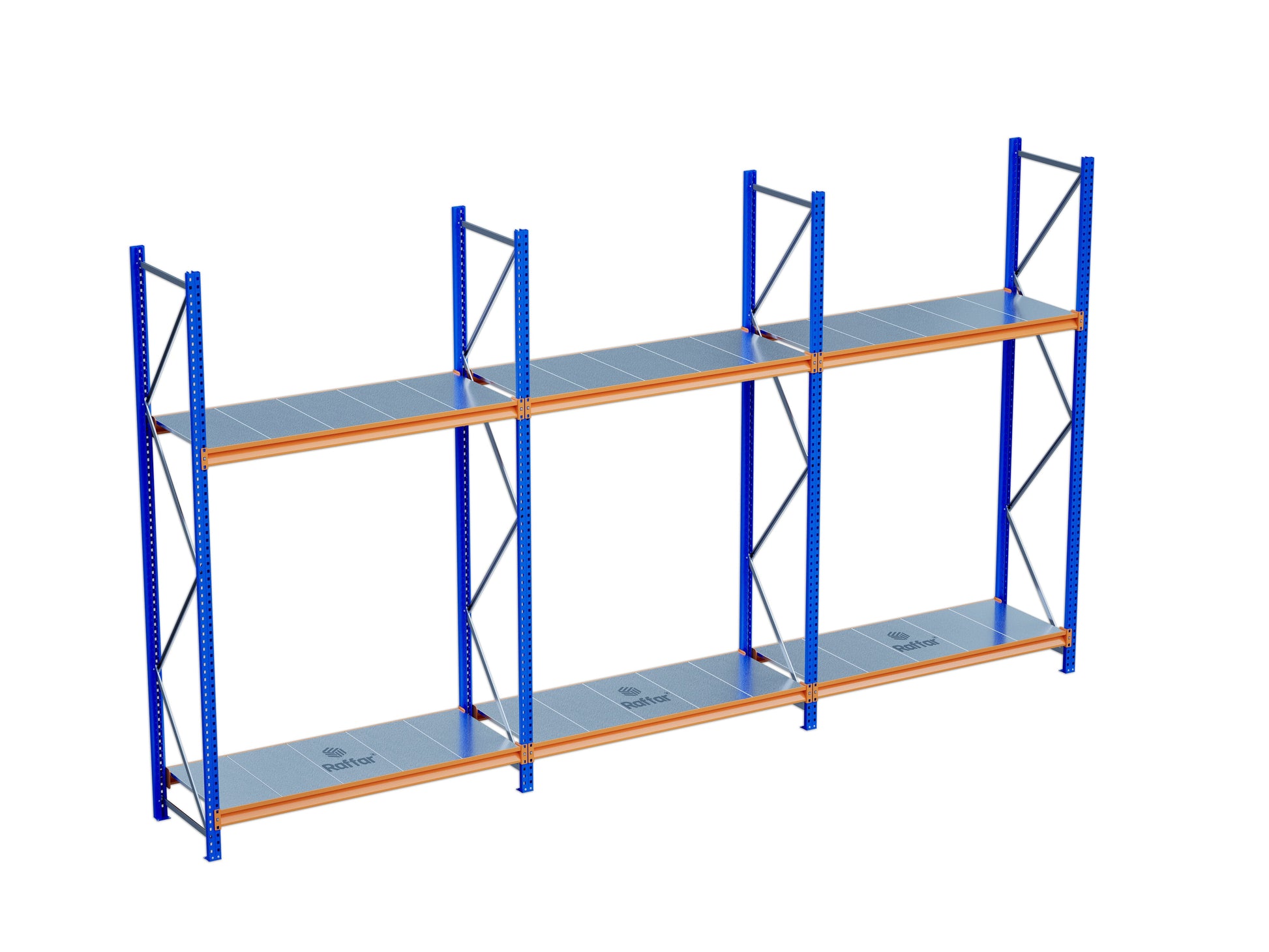 2 Katlı 3li Bitişik Endüstriyel Depo Raf Sistemi – Hafif Yük Rafı