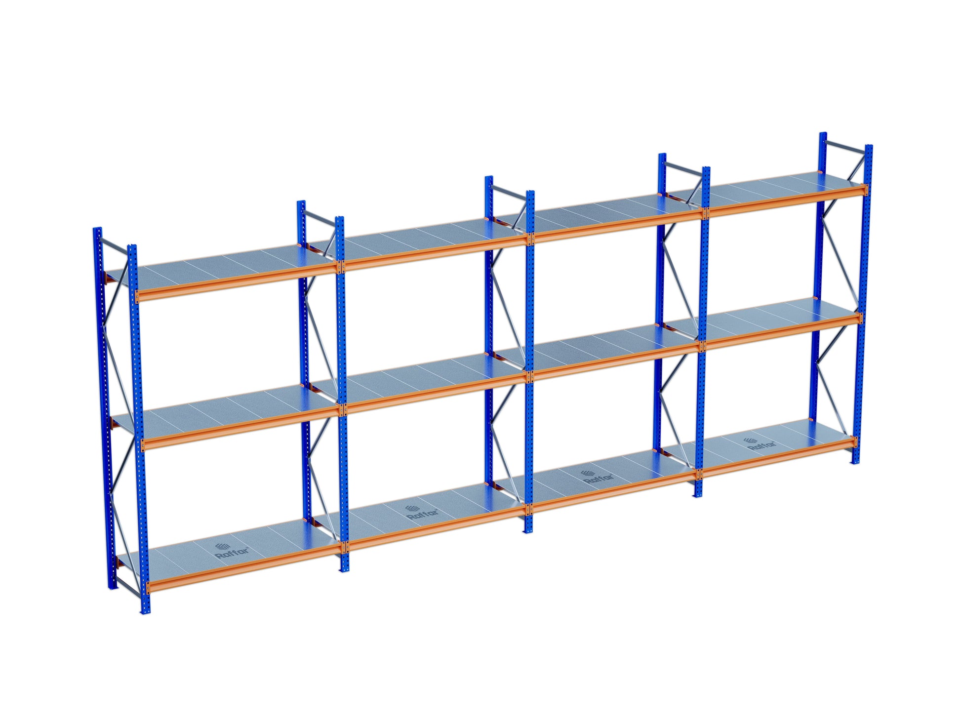 3 Katlı 4li Bitişik Endüstriyel Depo Raf Sistemi – Hafif Yük Rafı