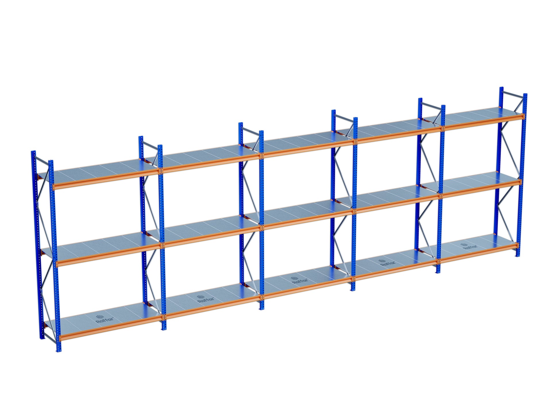 3 Katlı 5li Bitişik Endüstriyel Depo Raf Sistemi – Hafif Yük Rafı